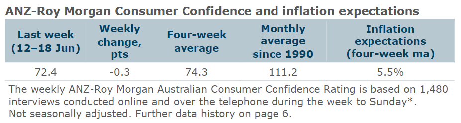 ANZ Senior Economist Adelaide Timbrell said: “Consumer confidence was again at its weakest since April 2020 and among the four weakest results since the pandemic began. Notably, confidence about ‘current financial conditions’ fell to a new low, after declining 10.6pts in the past four weeks. This is the third consecutive week with ‘future financial conditions’ below 90, the longest it has been this low on record.