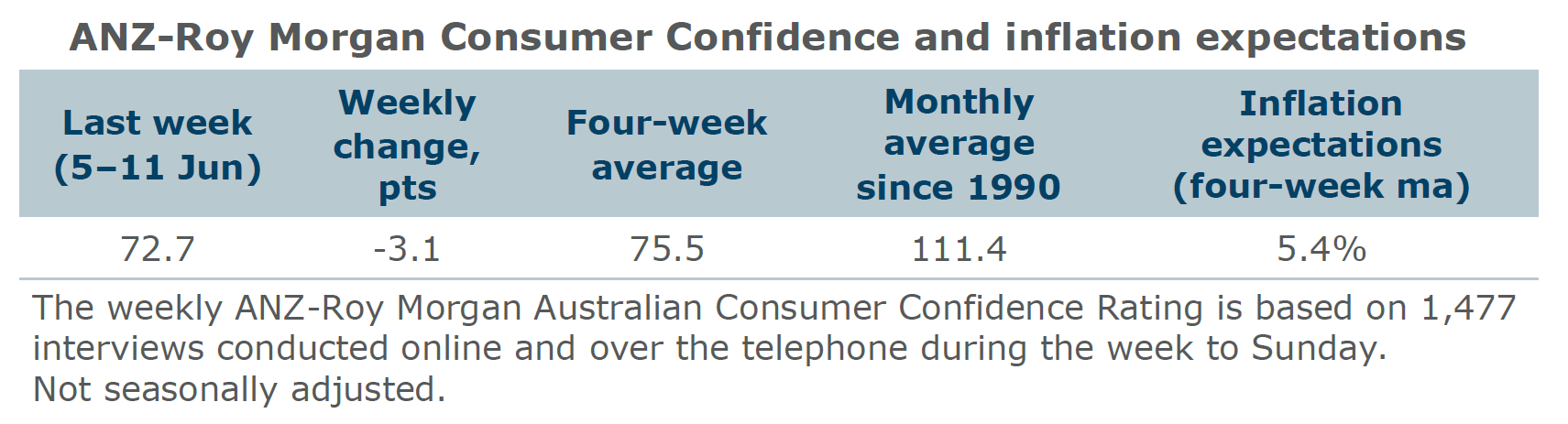 Consumer confidence decreased by 3.1 points last week. Among the mainland states, confidence rose only in New South Wales, while it fell in Victoria, Queensland, South Australia and Western Australia.