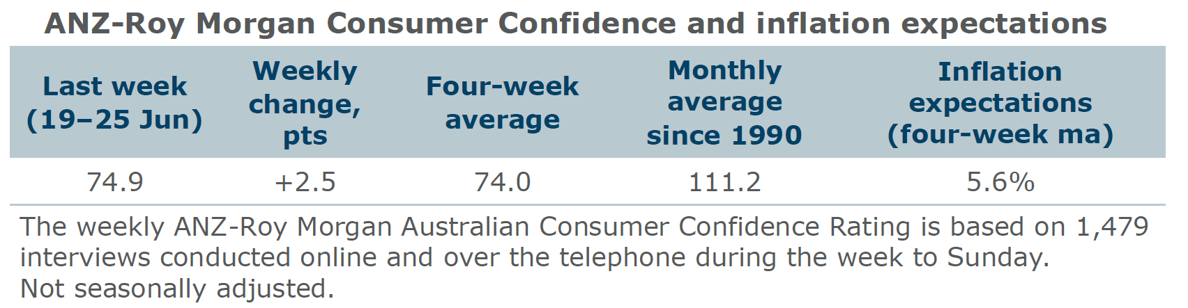 "Confidence in ‘future financial conditions’ fell to its weakest since March 2020, ahead of the Reserve Bank of Australia July meeting, which we expect will include a cash rate increase.