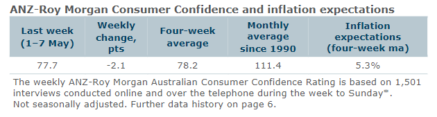 ‘Weekly inflation expectations’ rose 0.3ppt to 5.3%, while its four-week moving average was unchanged at 5.3%.