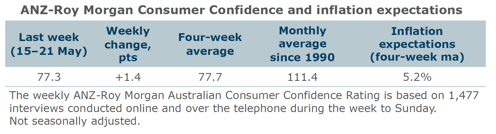 "But confidence was still among the worst ten results since January 2020, seven of which have occurred between March and May of 2023. This highlights the impact of cost-of-living pressure and rising interest rates, despite low unemployment and an acceleration in annual wage growth to 3.7 per cent year on year in the first quarter.