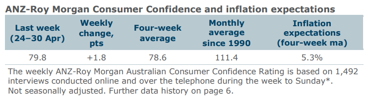 ‘Weekly inflation expectations’ fell 0.3ppt to 5.0%, while its four-week moving average was down 0.2ppt to 5.3%.