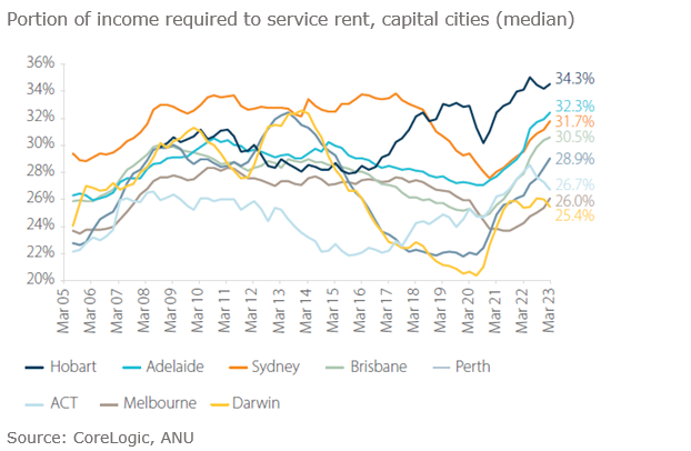 The report found rental affordability – the portion of income required to service a new lease – is at the highest level since June 2014, with 30.8 per cent of income required to service a new lease nationally, for a median income household.