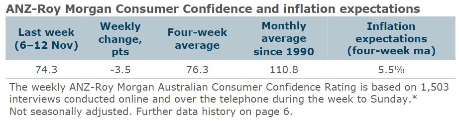 ANZ Senior Economist Adelaide Timbrell said: “The ANZ-Roy Morgan Australian Consumer Confidence index decreased last week to its lowest level in four months following the cash rate hike to 4.35%by the RBA. But confidence about future economic conditions –the outlook for the economy over the next five years –fell to its lowest level since April 2020. This suggests that the RBA hike may have been a negative economic signal for some households.