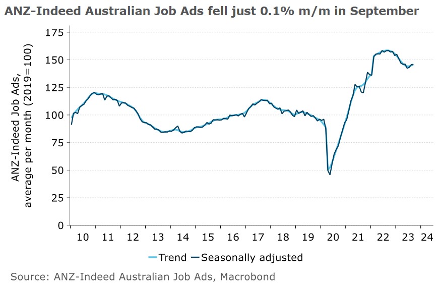 ANZ-Indeed Australian Job Ads has fallen 8.2% from the September 2022 peak but remains 51.4% higher than pre-COVID levels.