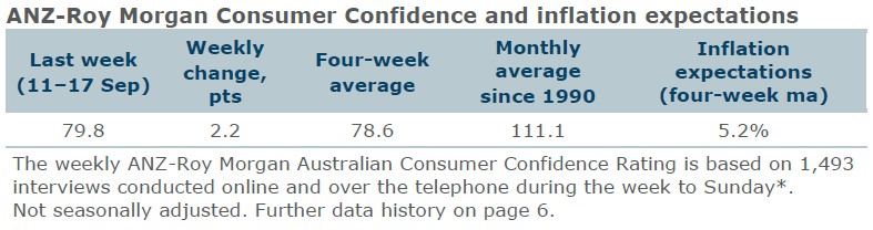 ANZ Economist Madeline Dunk said: “ANZ-Roy Morgan Consumer Confidence rose 2.2pts last week to reach its highest level since late April. While the series remains at very low levels, particularly for those paying off a mortgage, there are some early signs of tempered optimism amongst households.