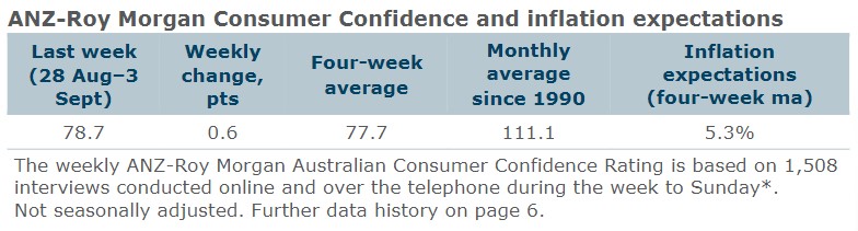 ANZ Senior Economist Adelaide Timbrell said: "ANZ-Roy Morgan Australian Consumer Confidence rose to 78.7, its highest level since April 2023. The encouraging July monthly CPI indicator print which showed falling annual inflation likely supported the increase in confidence. In particular, government rebates which reduced the net price increase of electricity from 19.2% m/m to 6% m/m may have helped household financial confidence.