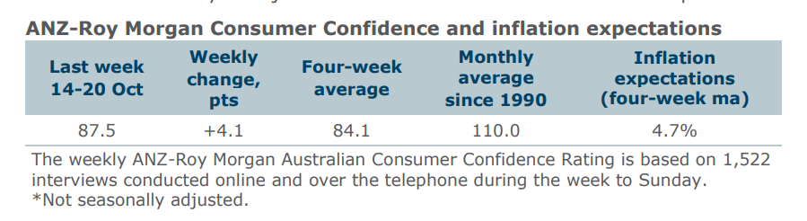 "The ‘time-to-buy-a-major-household-item’ subindex also rose to its highest level since January 2023. The boost in confidence may be linked to last week’s stronger-than-expected labour market data which showed employment grew 64.,100 in September and the participation rate was at a record high.