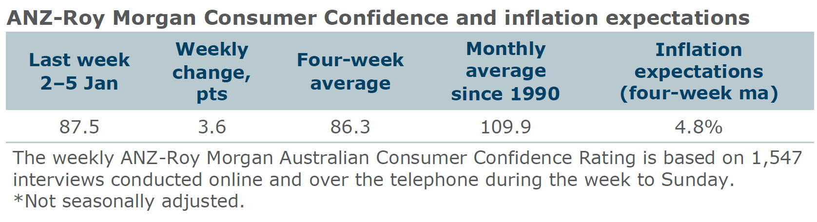 "ANZ-Roy Morgan Australian Consumer Confidence jumped 3.6 points in the first week of 2025," ANZ Economist, Madeline Dunk said.