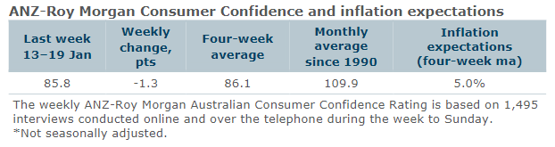 Please note the next ANZ-Roy Morgan Australian Consumer Confidence report will be released on Wednesday 29 January.