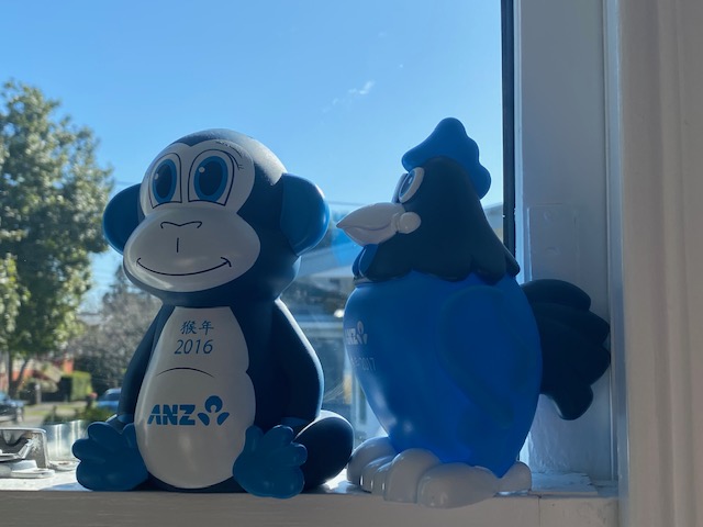 I have the full set of ANZ’s Lunar New Year money boxes at work but I keep a duplicate of these two sitting on the window sill of my home office. They represent my and my husband’s birth years (I am the rooster!).