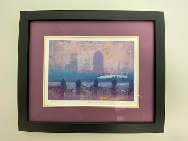 This picture of Canary Wharf in London (circa 1999) with the Thames Barrier and Millennium Dome in the foreground was given to me when I left London.