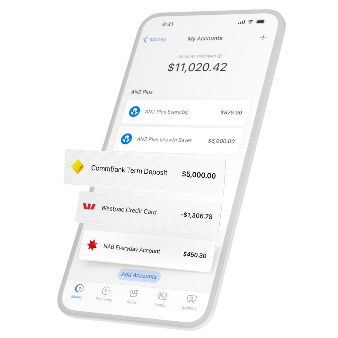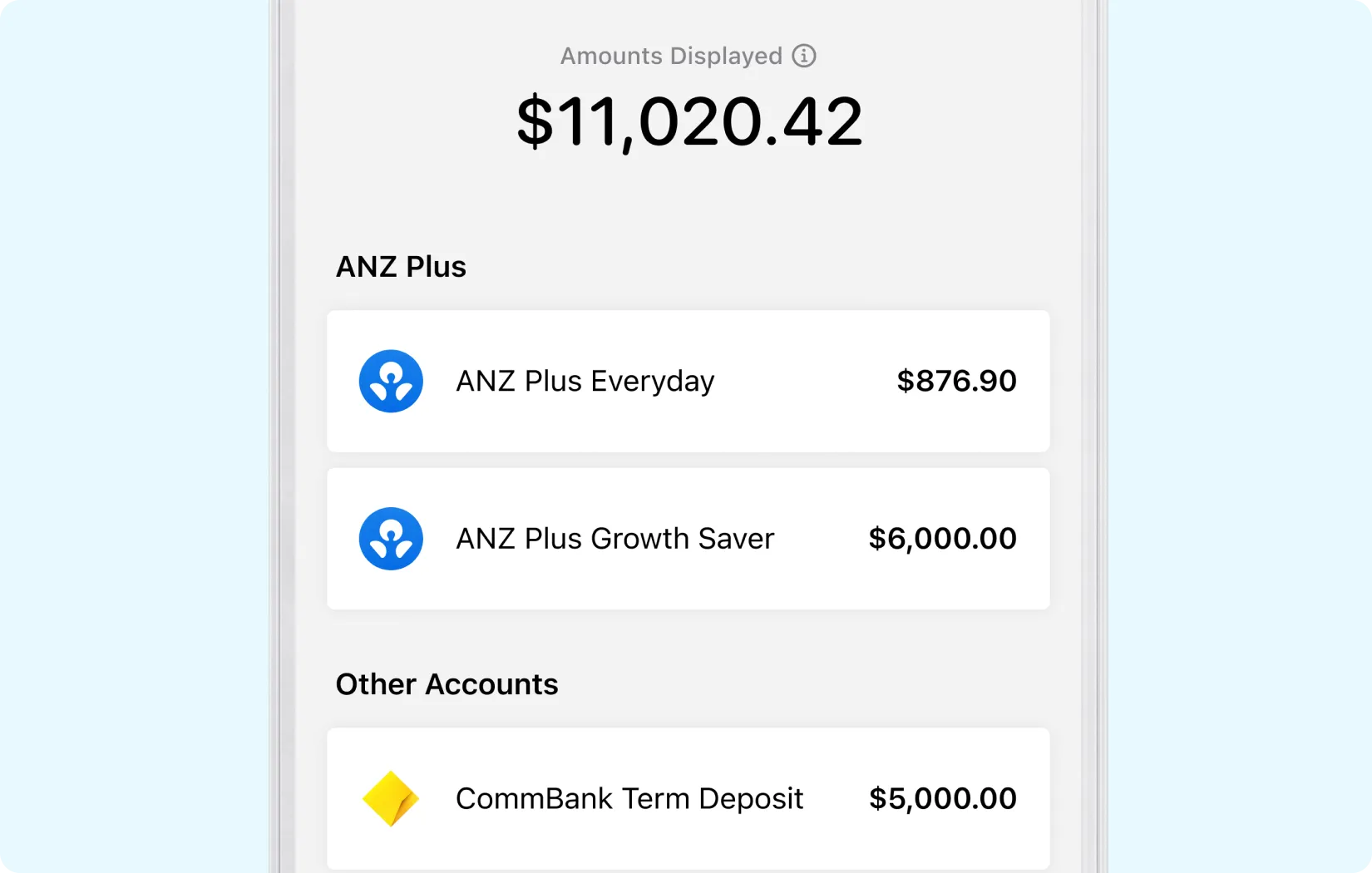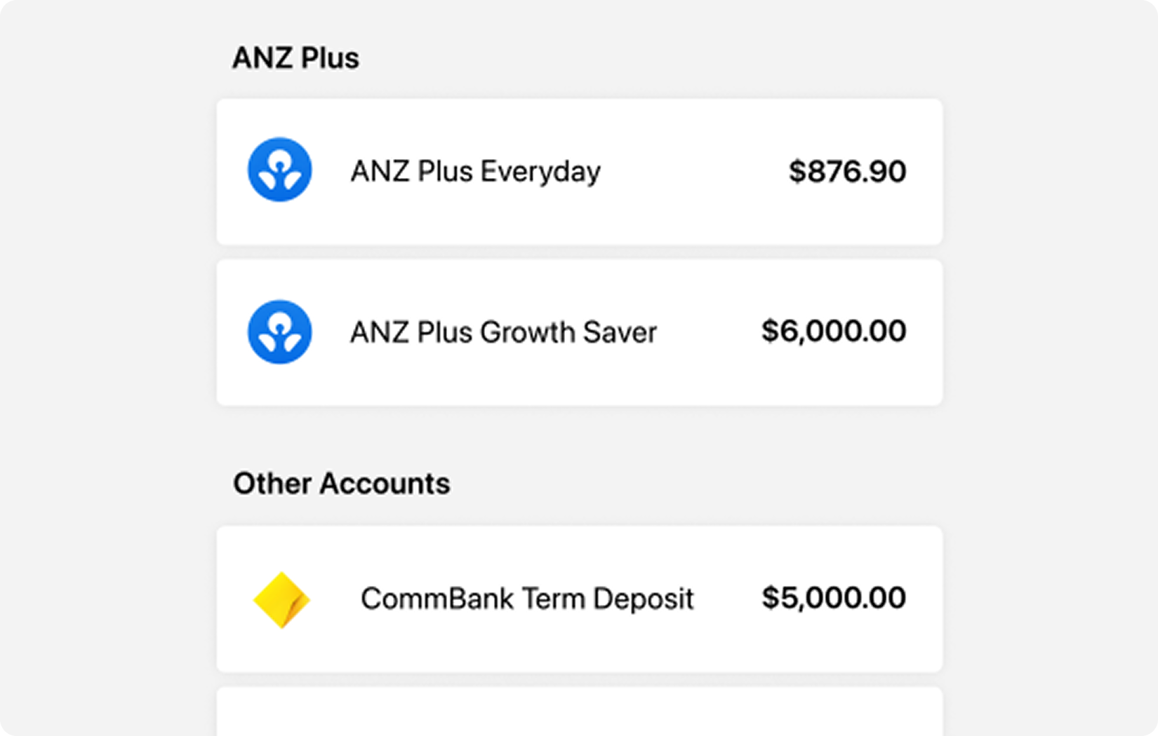My Accounts displays a consolidated view of your accounts held with ANZ Plus and the eligible accounts you choose to link.