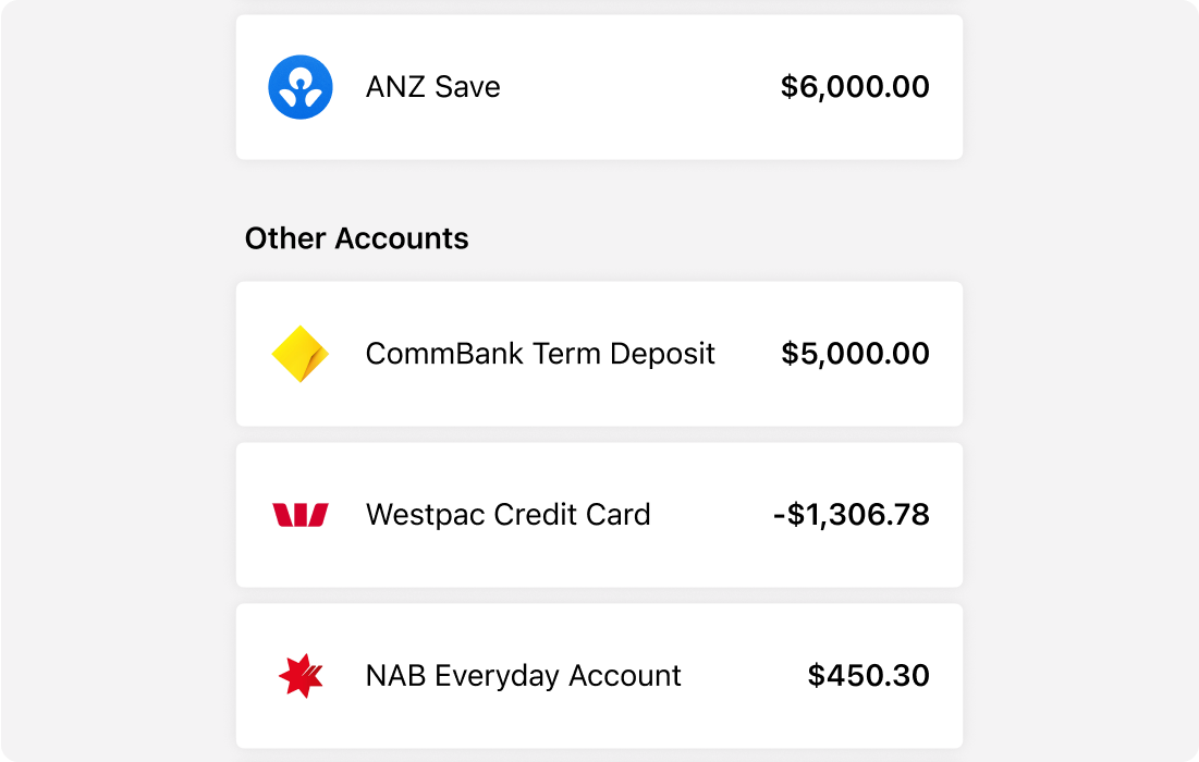 You can link your eligible ANZ accounts and the eligible accounts you have with other banks or providers to My Accounts. This may include accounts that are not personal to you. Once linked, you may be able to view transactions linked to that account by tapping on the account.