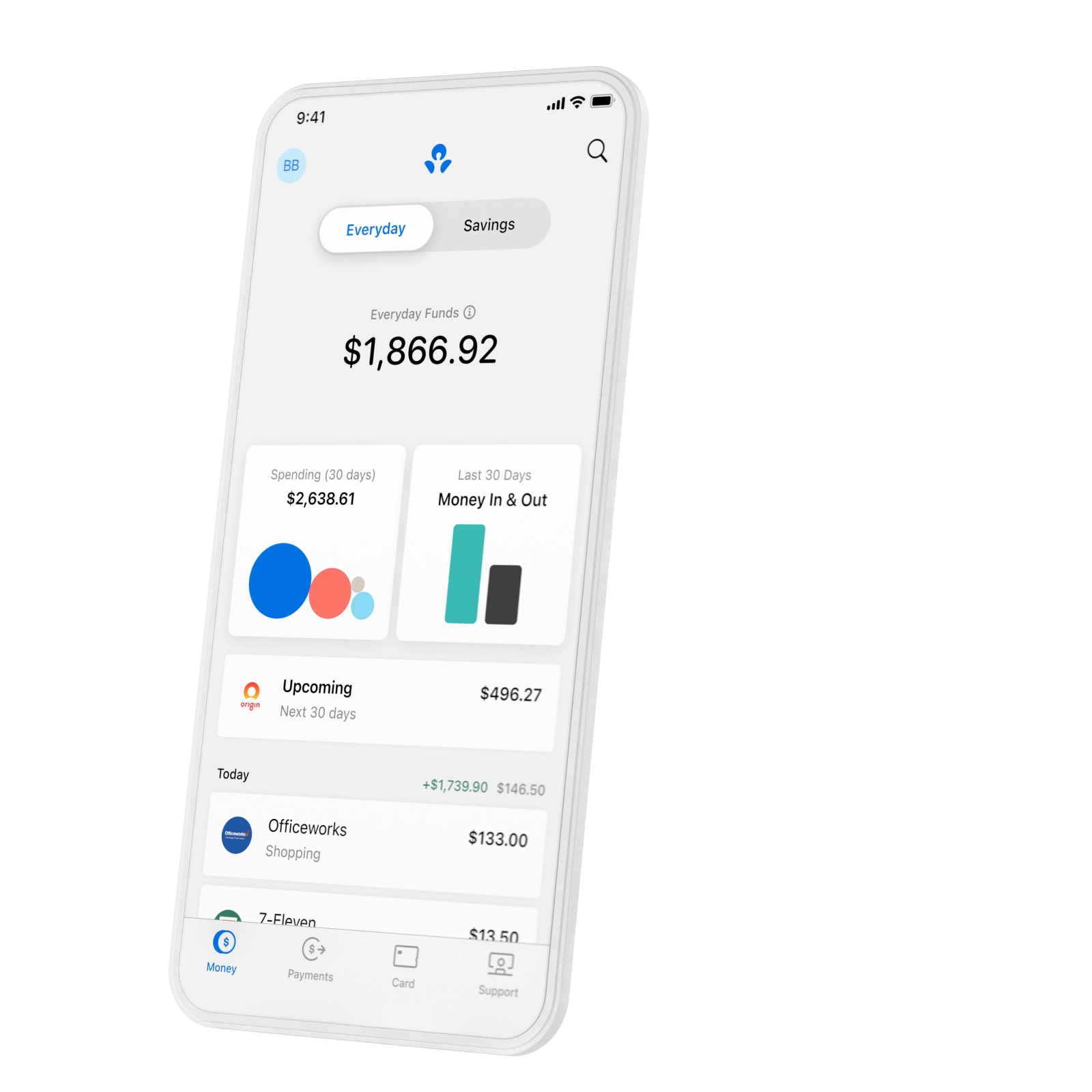 An ANZ Plus Everyday account comes with a linked ANZ Plus Visa Debit card which is accessible in the Everyday view of the Money tab.