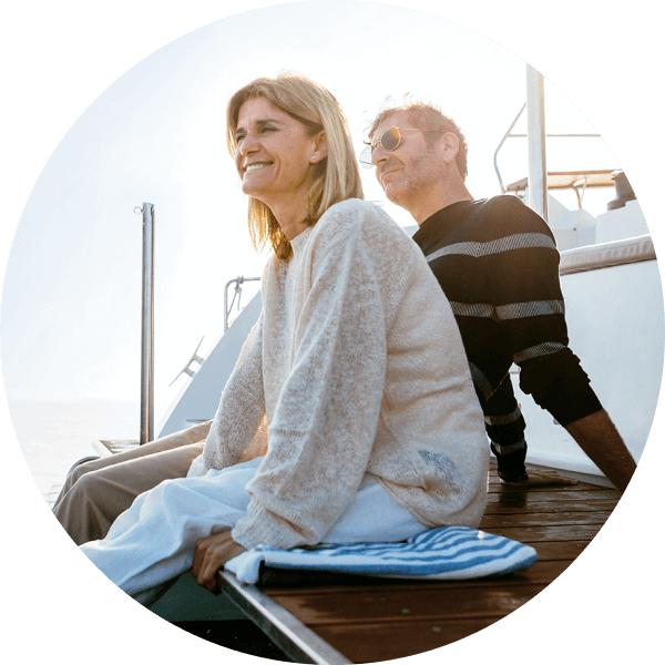 Smiling couple on a yacht deck